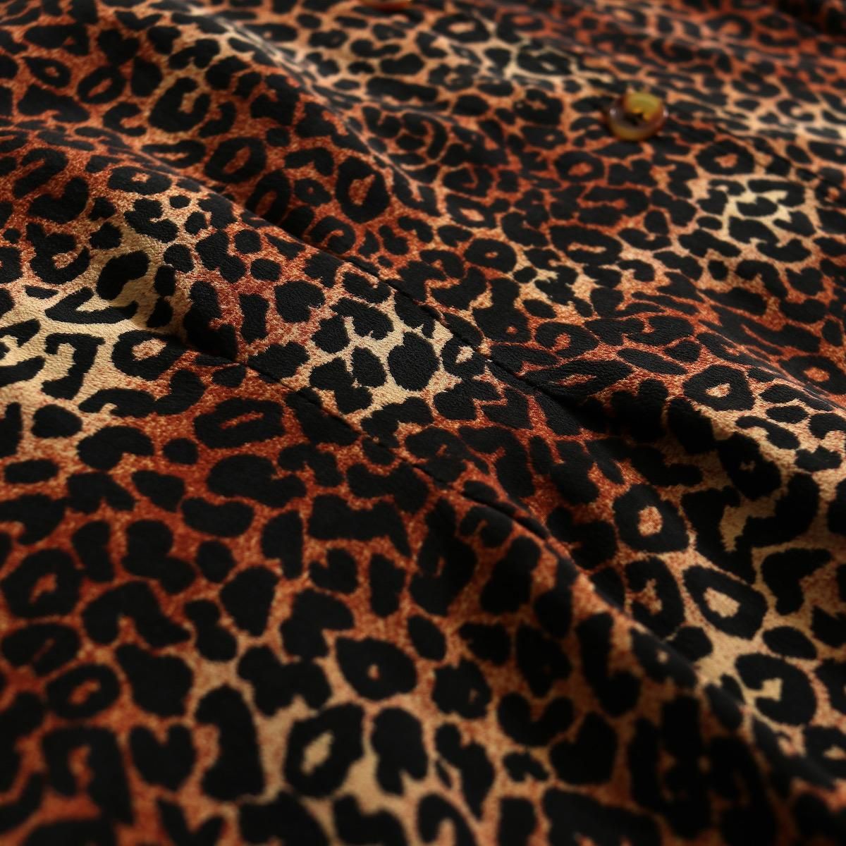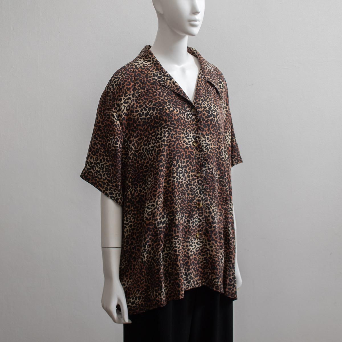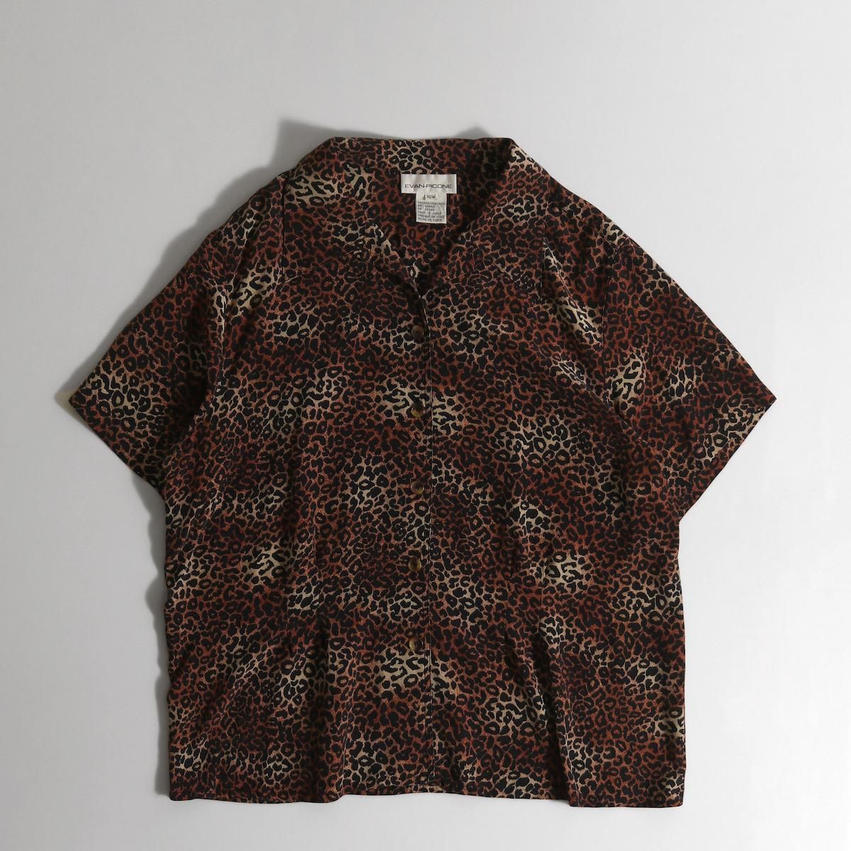 [レディース] 1990s ヴィンテージ ビッグサイズ レオパード柄 シルク オープンカラーシャツ ブラウン