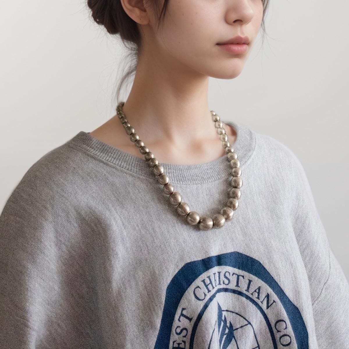 1980s~ ヴィンテージ メキシカンシルバー ボールチェーン ネックレス 艶消し メキシコ SV925 TD-29