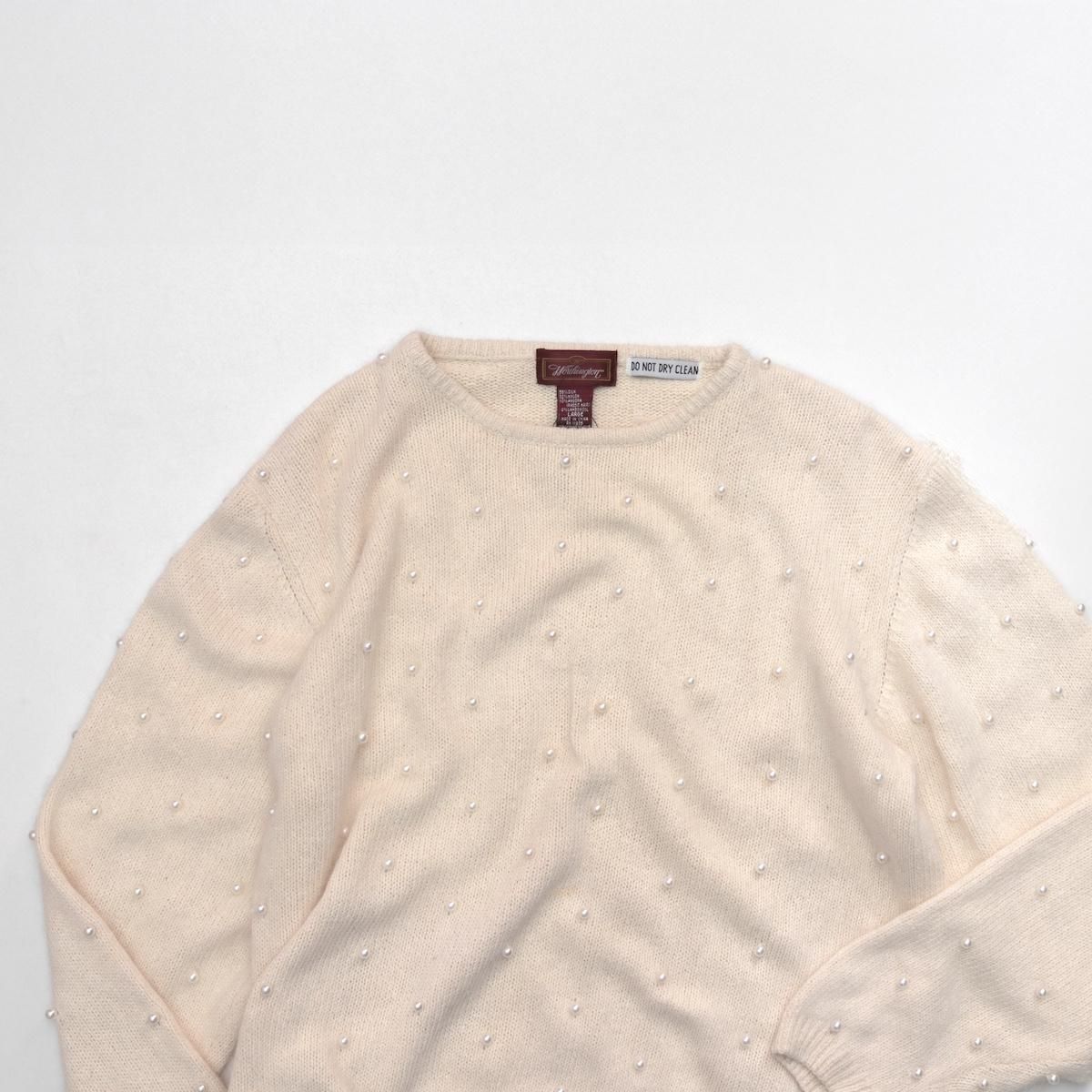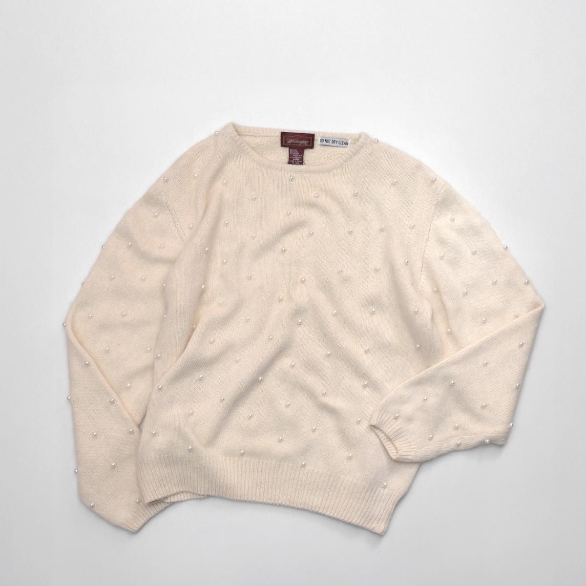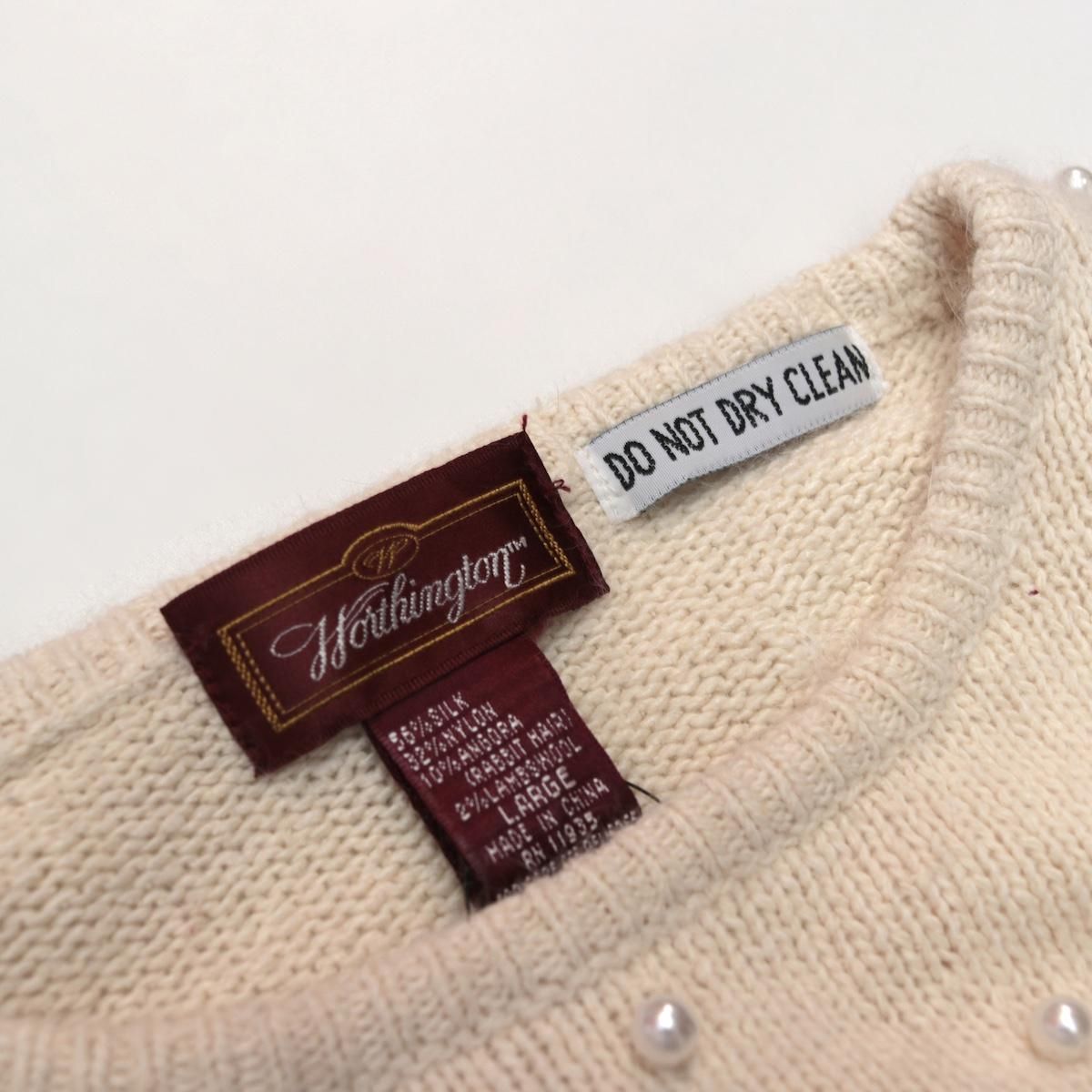 1990s ヴィンテージ パールビーズ アンゴラxシルク混ニット オフホワイト 1001-9