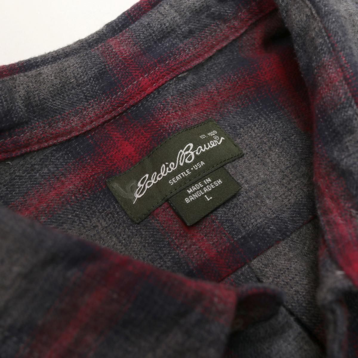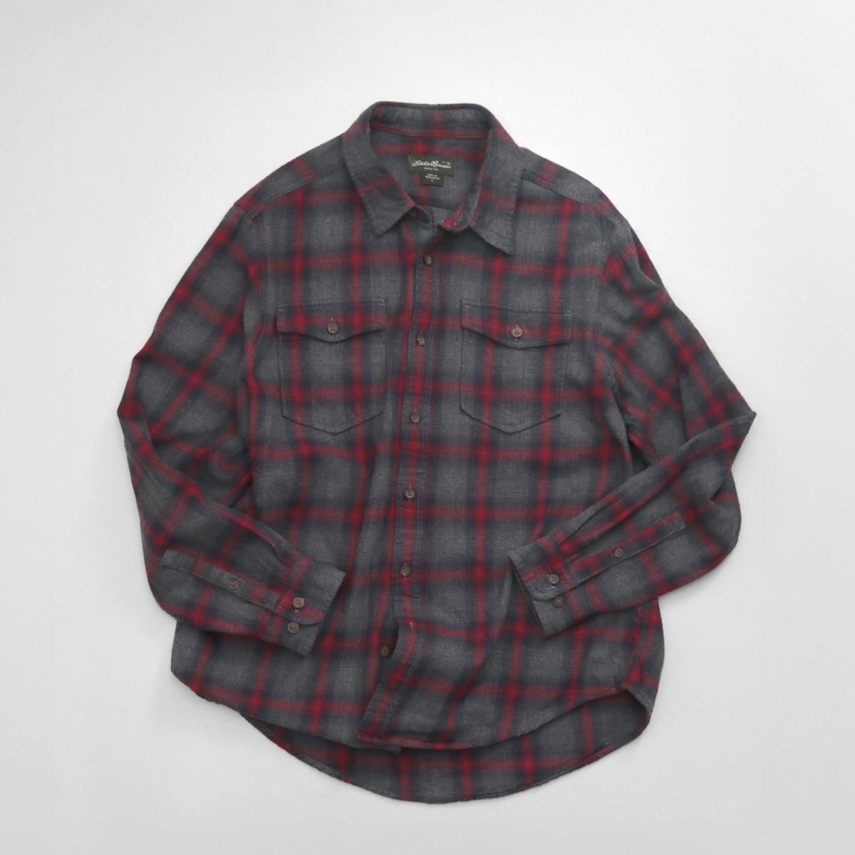 ユーズド エディーバウアー オンブレチェック ネルシャツ グレー x レッド [Eddie Bauer] 3101-1