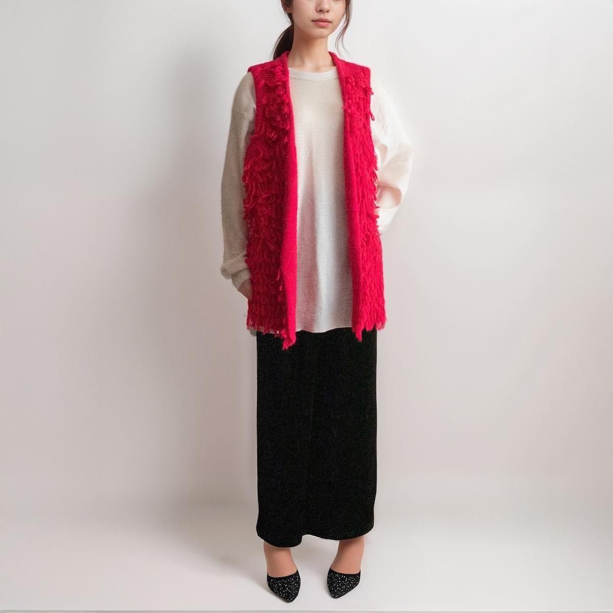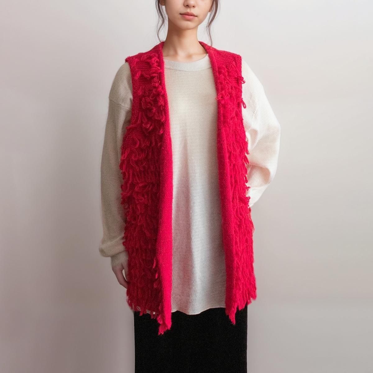 ユーズド ITALY製 ループフリンジ ニットベスト もけもけ ピンク 9101-4