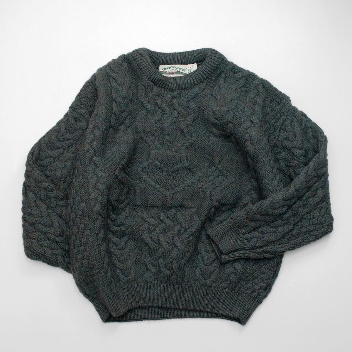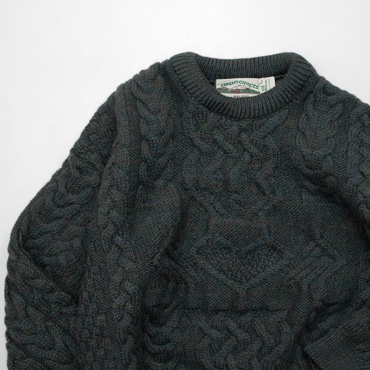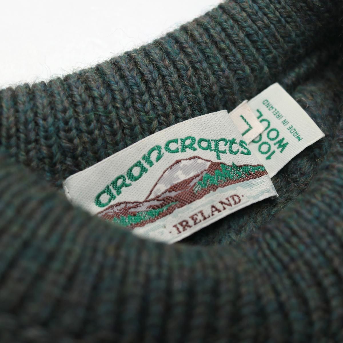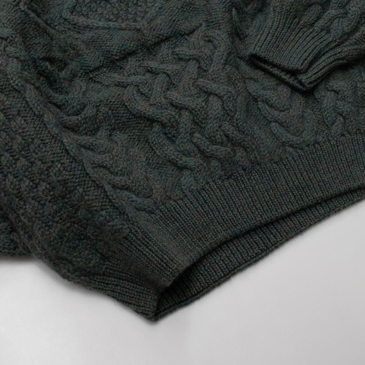 ユーズド アイルランド製 アランクラフツ ケーブルニット クルーネック ミックスグリーン [Aran Crafts] 2311-3