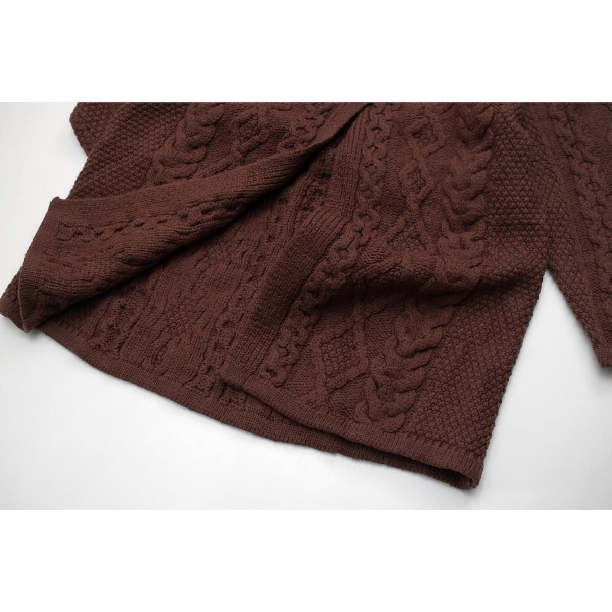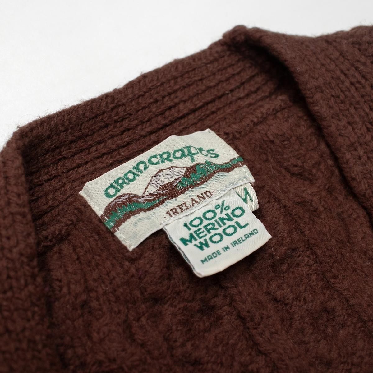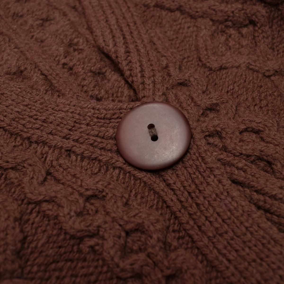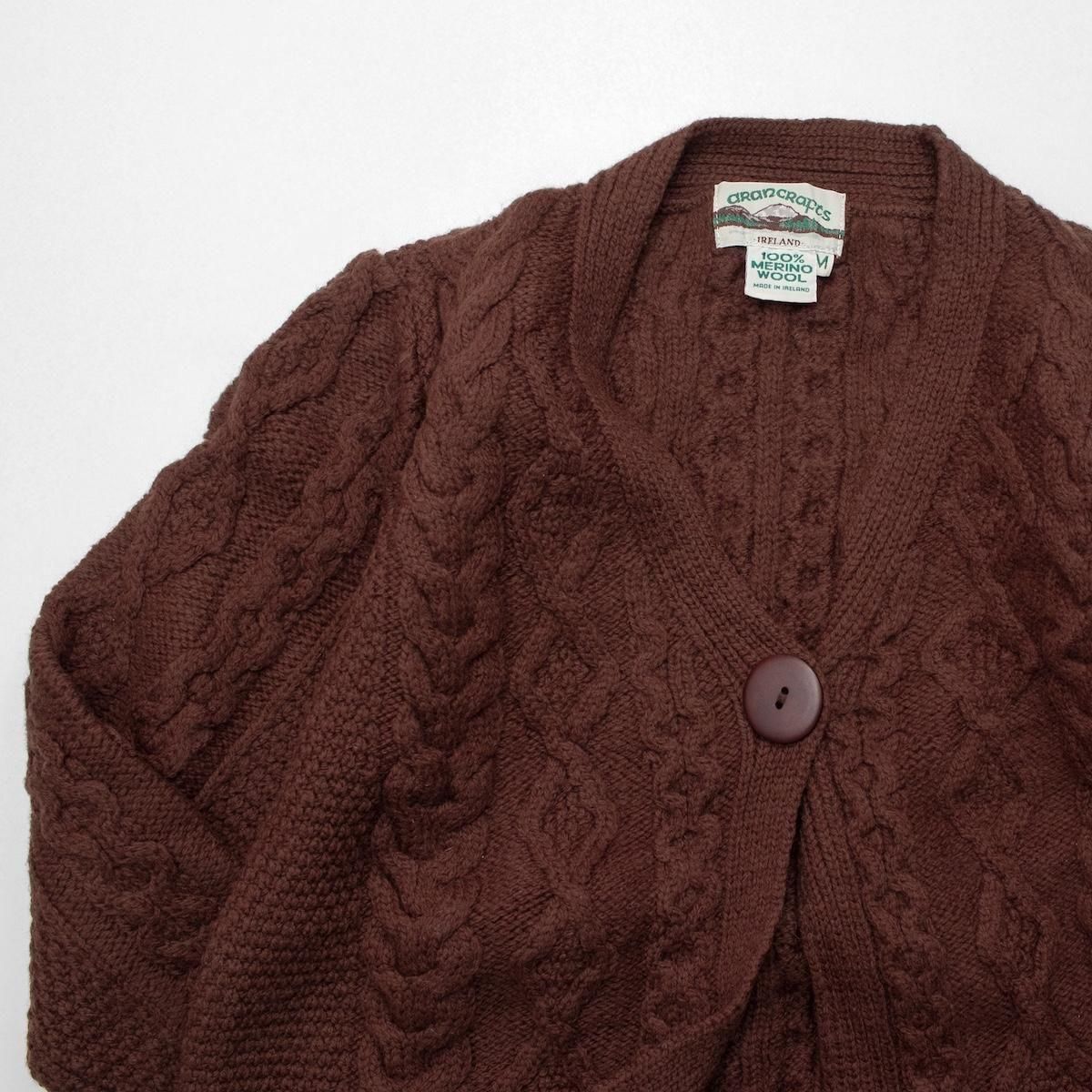 ユーズド アイルランド製 アランクラフツ ケーブルニット カーディガン パフスリーブ ブラウン アランセーター [Aran Crafts] 2311-9