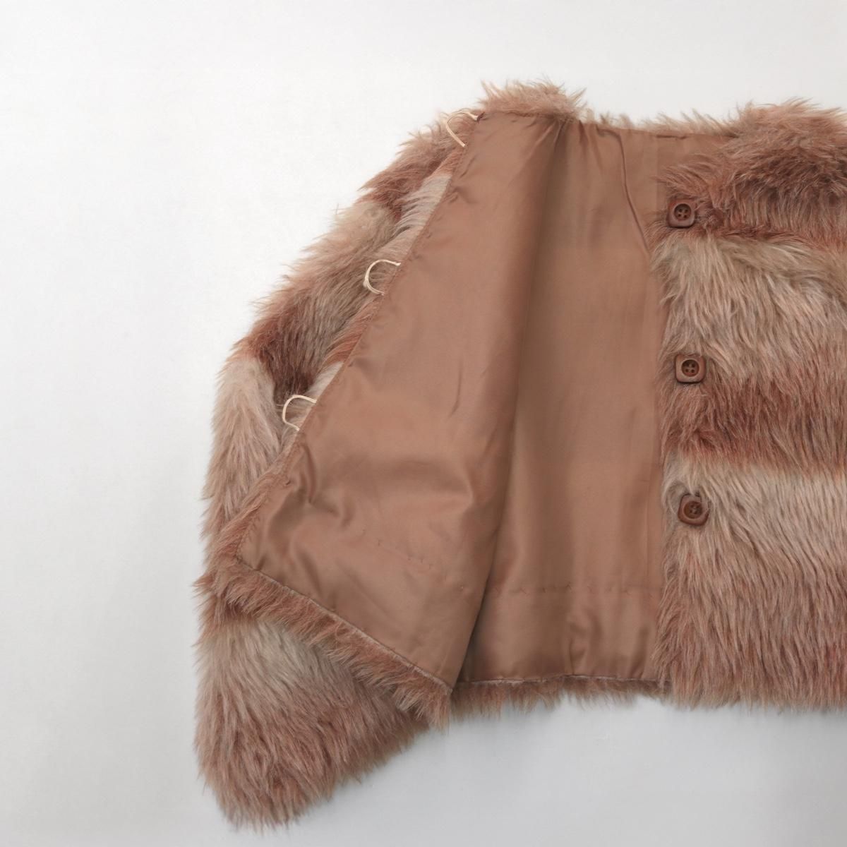 1970s~ ヴィンテージ ショート丈 フェイクファー ジャケット ベージュ エコファー 1121-5