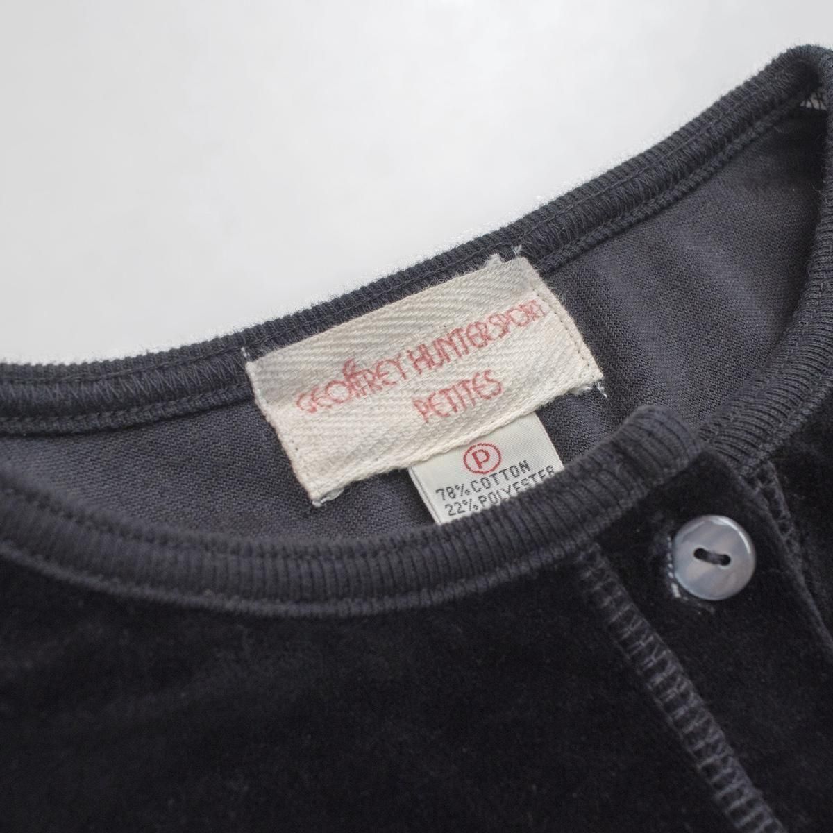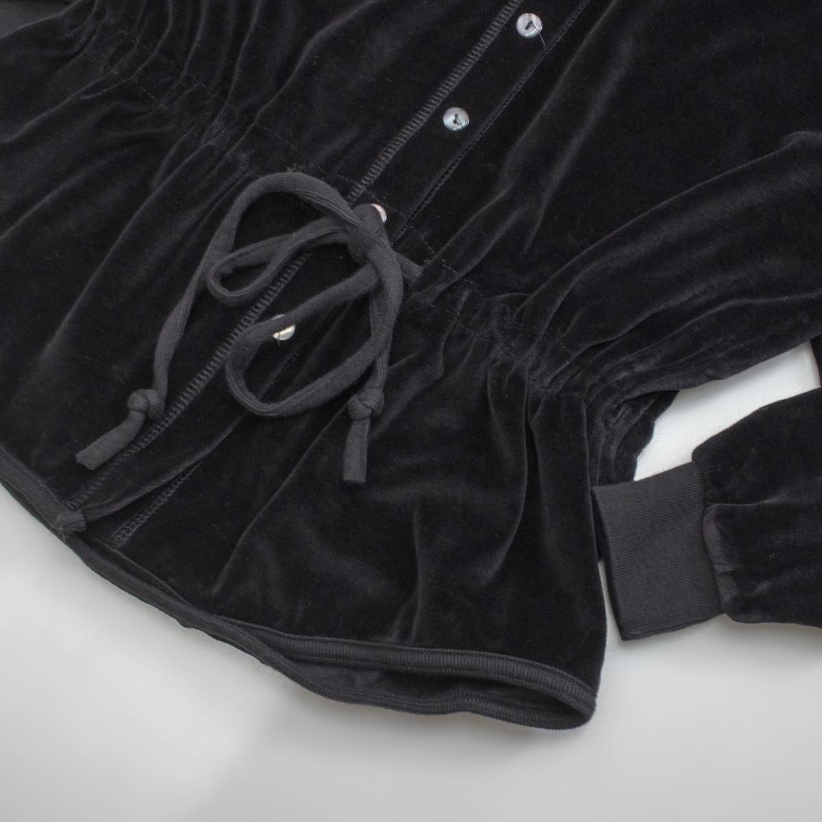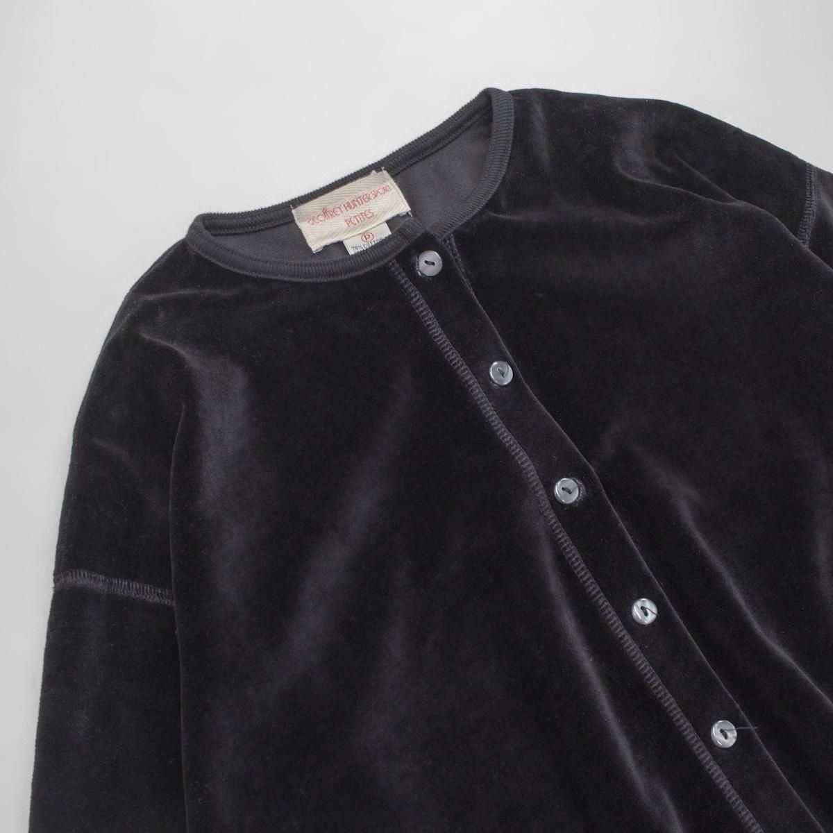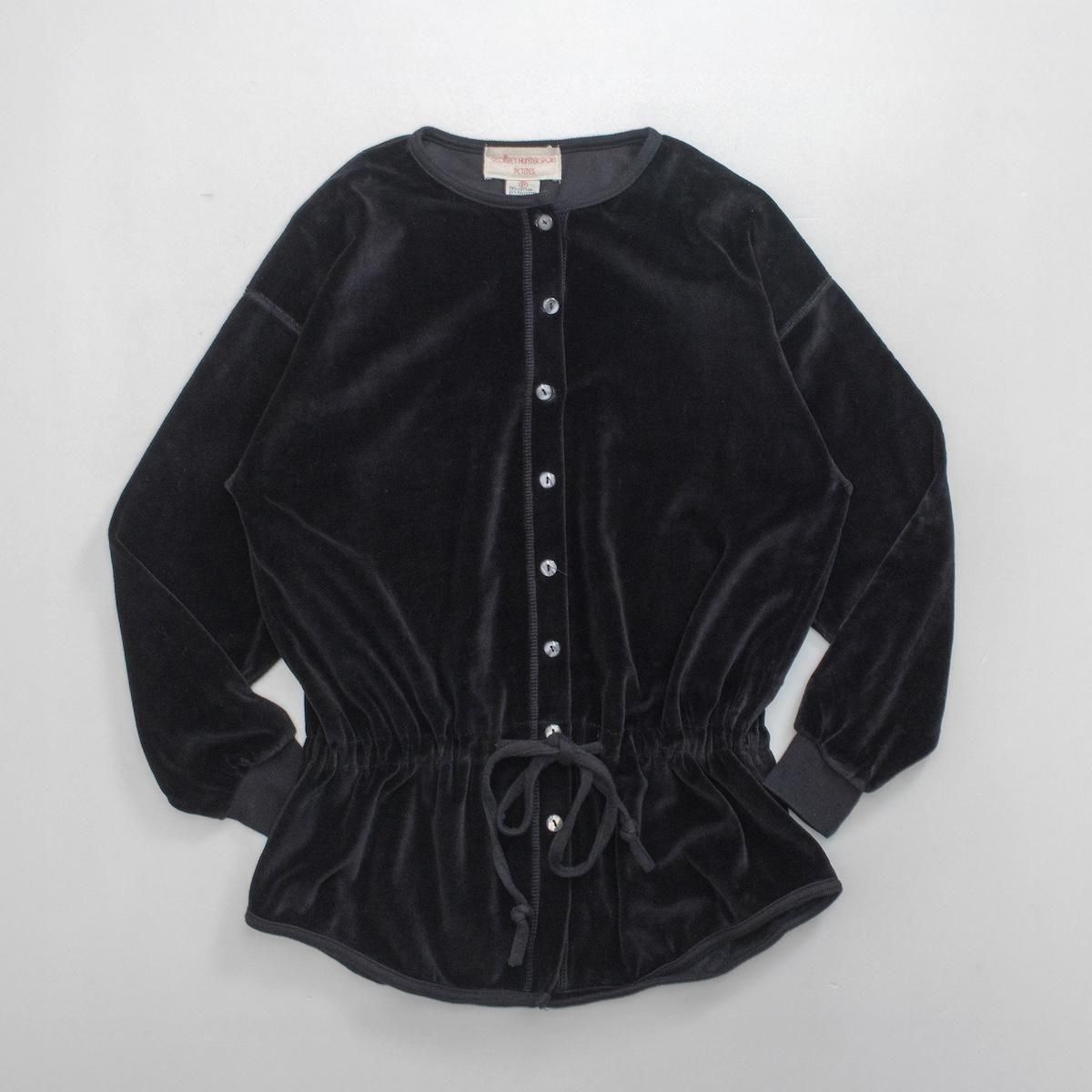 1990s KOREA製 ヴィンテージ ベロア トップス カーディガン ウエストシェイプ ブラック 1221-2
